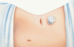 トライアル(試験刺激)後、腹部や上臀部に神経刺激装置を埋植し、完全植込み型システムとします。
